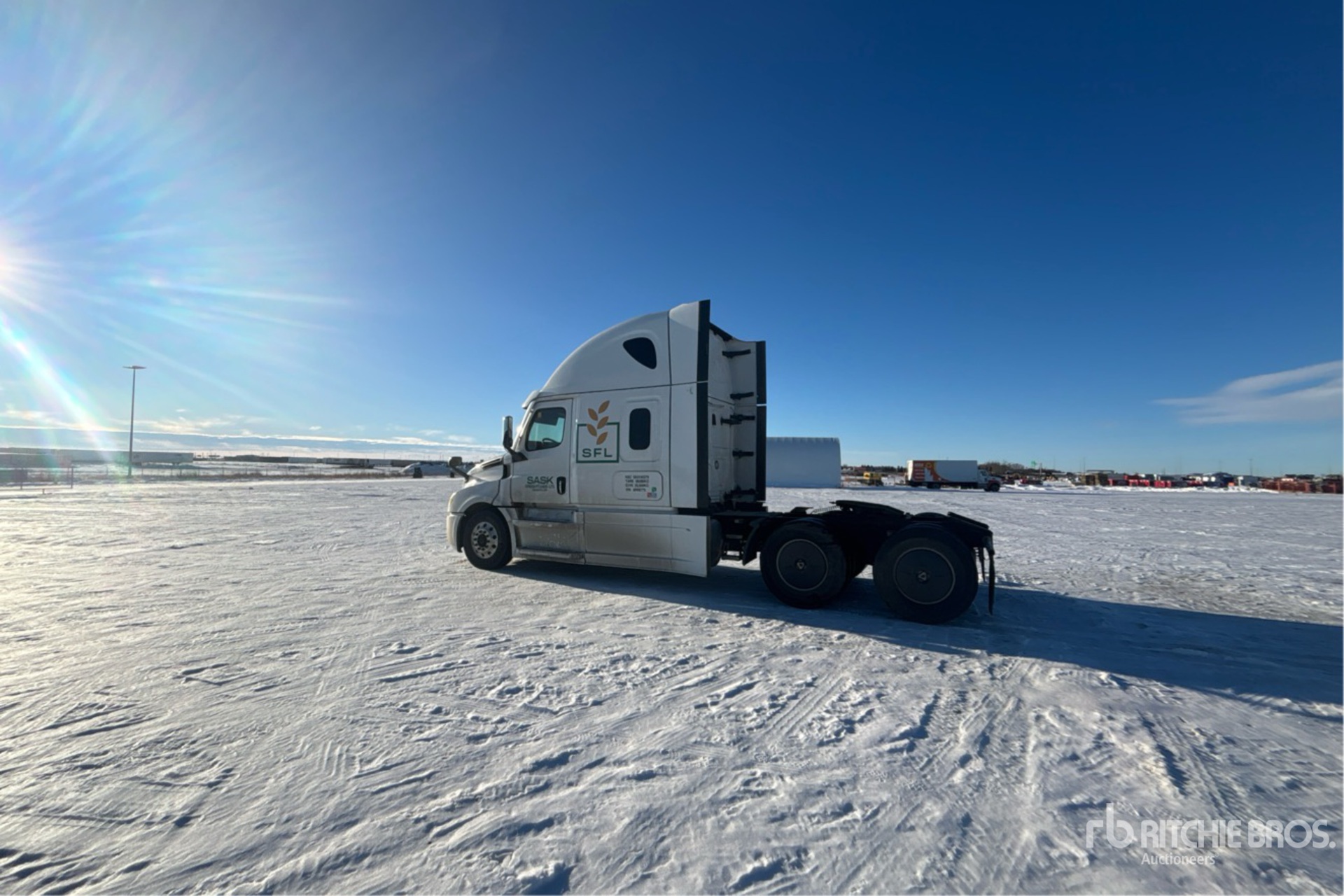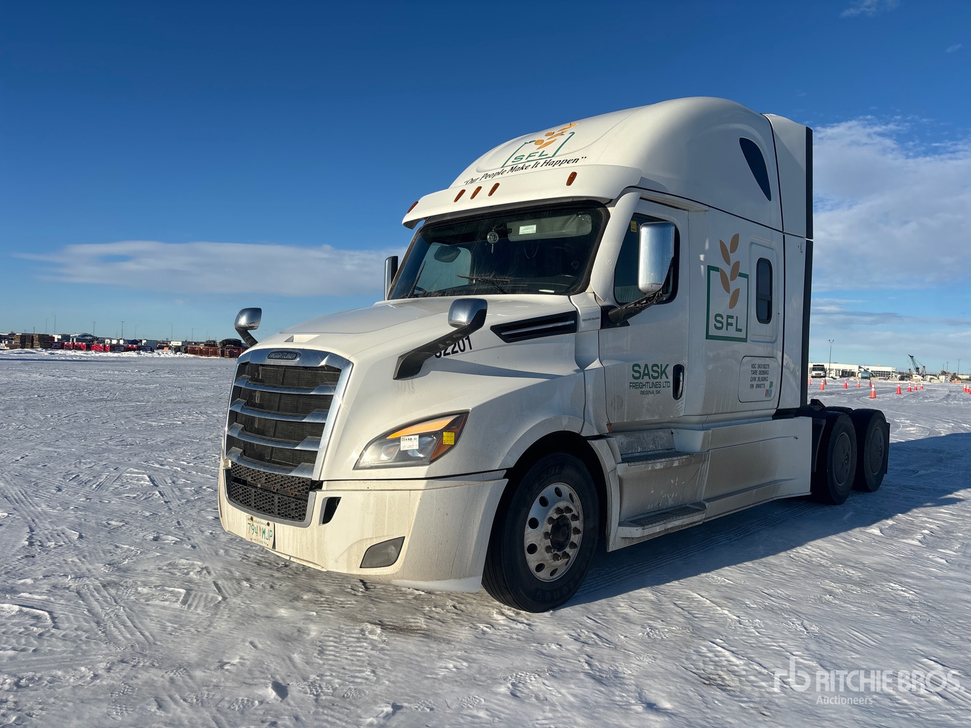 Located in Lane 34 Spot 8, Detroit DD15 505 hp Engine, 13354 Engine hrs, Detroit DT12-1650-OH1 12-Speed Automated Transmission, 13220 lb Front Axle, 40000 lb Rears, 53220 lb GVWR, Engine Brake, Double Differential Locks, 70 in Mid Roof Sleeper Cab, 229 in Wheelbase, Air Suspension, Aluminum Wheels, 295/75R22.5 Front Tires, 11R22.5 Rear Tires, Air Sliding 5th Wheel, Dual Fuel Tanks