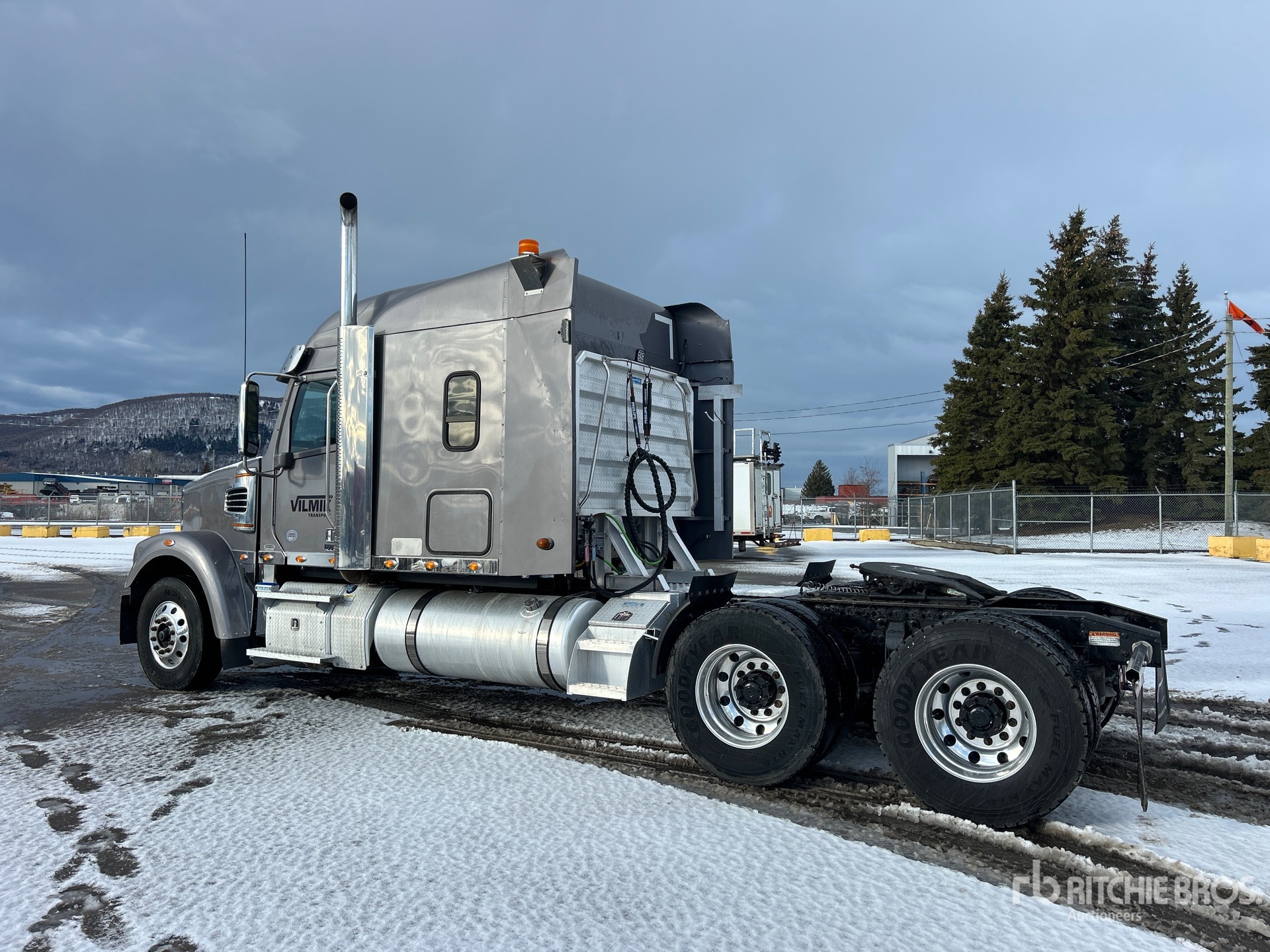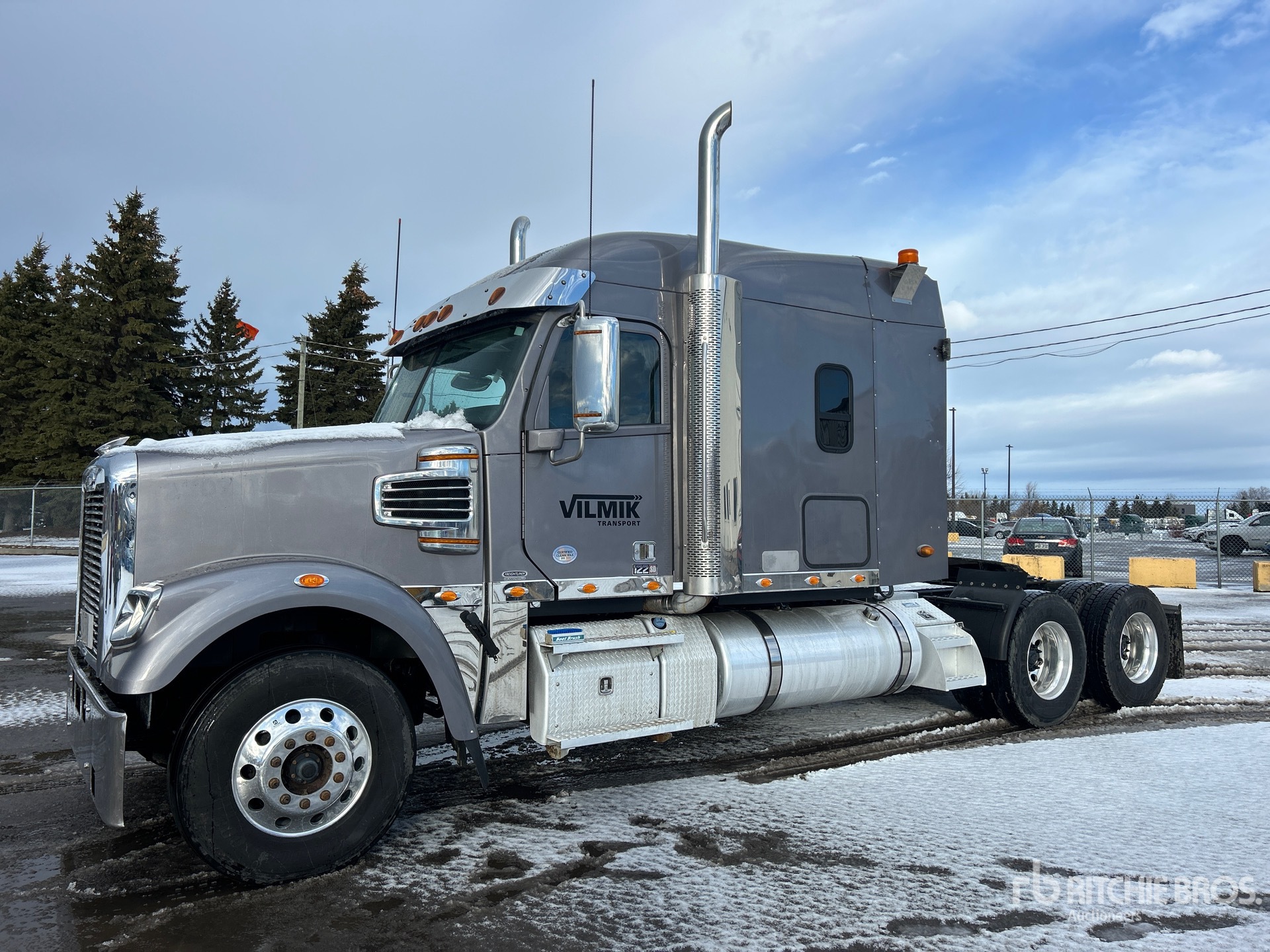 Detroit DD16 560 hp Engine, 2021 US EPA Label, 9906 Engine hrs, Eaton Fuller 18-Speed Manual Transmission, 13220 lb Front Axle, 46000 lb Rears, 59220 lb GVWR, Engine Brake, Differential Lock, 72 in High Rise Sleeper Cab, 246 in Wheelbase, Air Suspension, Aluminum Wheels, 295/75R22.5, Air Sliding 5th Wheel, Dual Fuel Tanks, Headache Rack