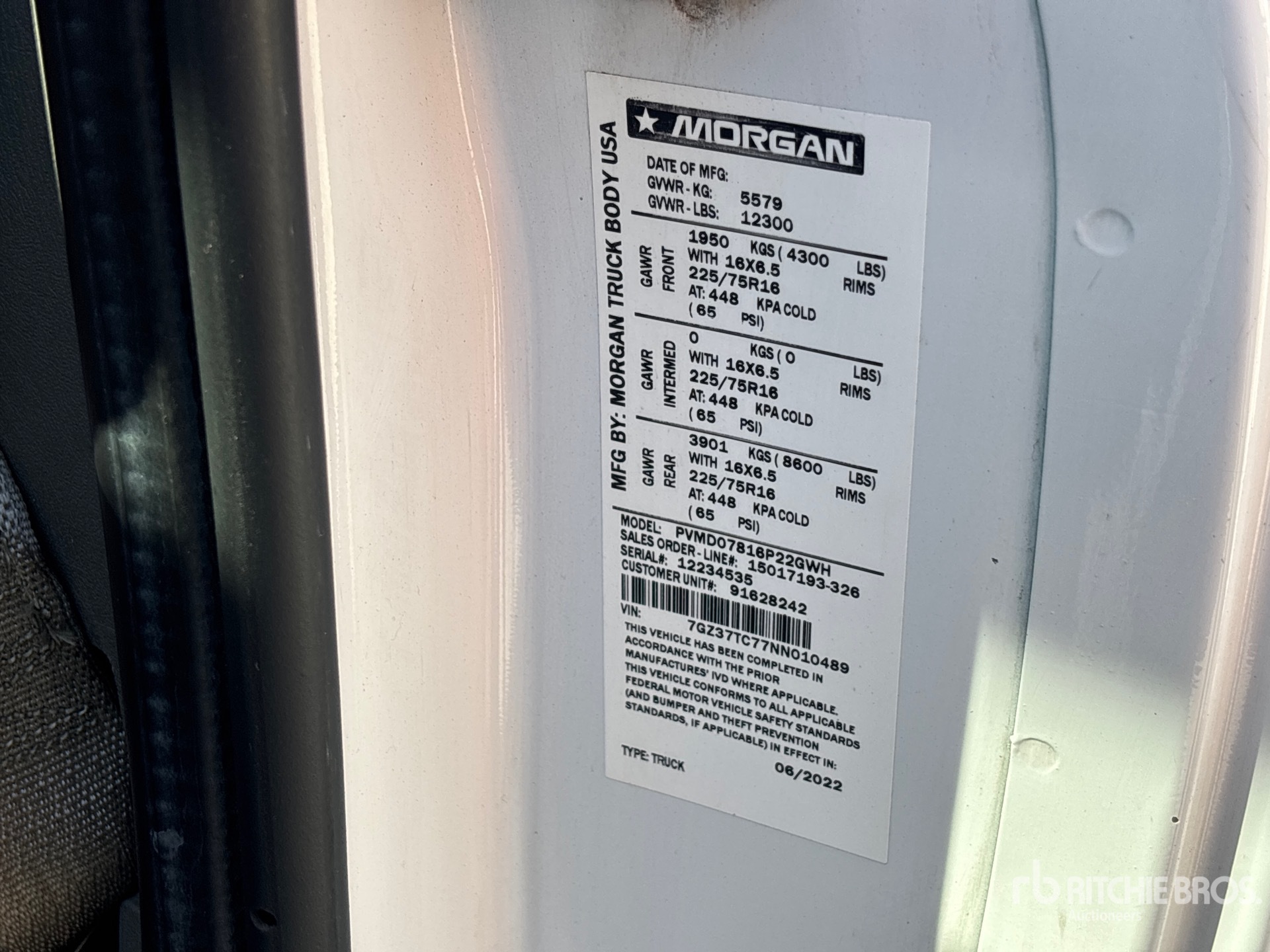 GM V8 6.6 L Gasoline Engine, 2022 US EPA Label, Automatic Transmission, 4300 lb Front Axle, 8800 lb Rears, 12300 lb GVWR, 225/75R16 Front Tires, 225/75R16 Rear Tires, Spring Suspension, 178 in Wheelbase, Morgan 16 ft x 96 in Wide x 91 in High Body, Walk-Up Ramp