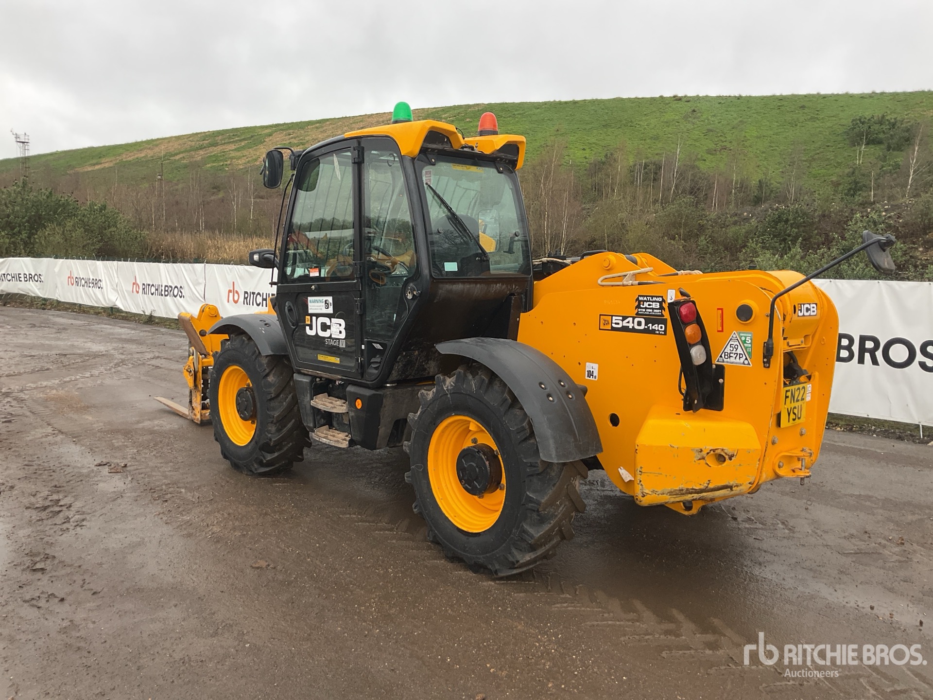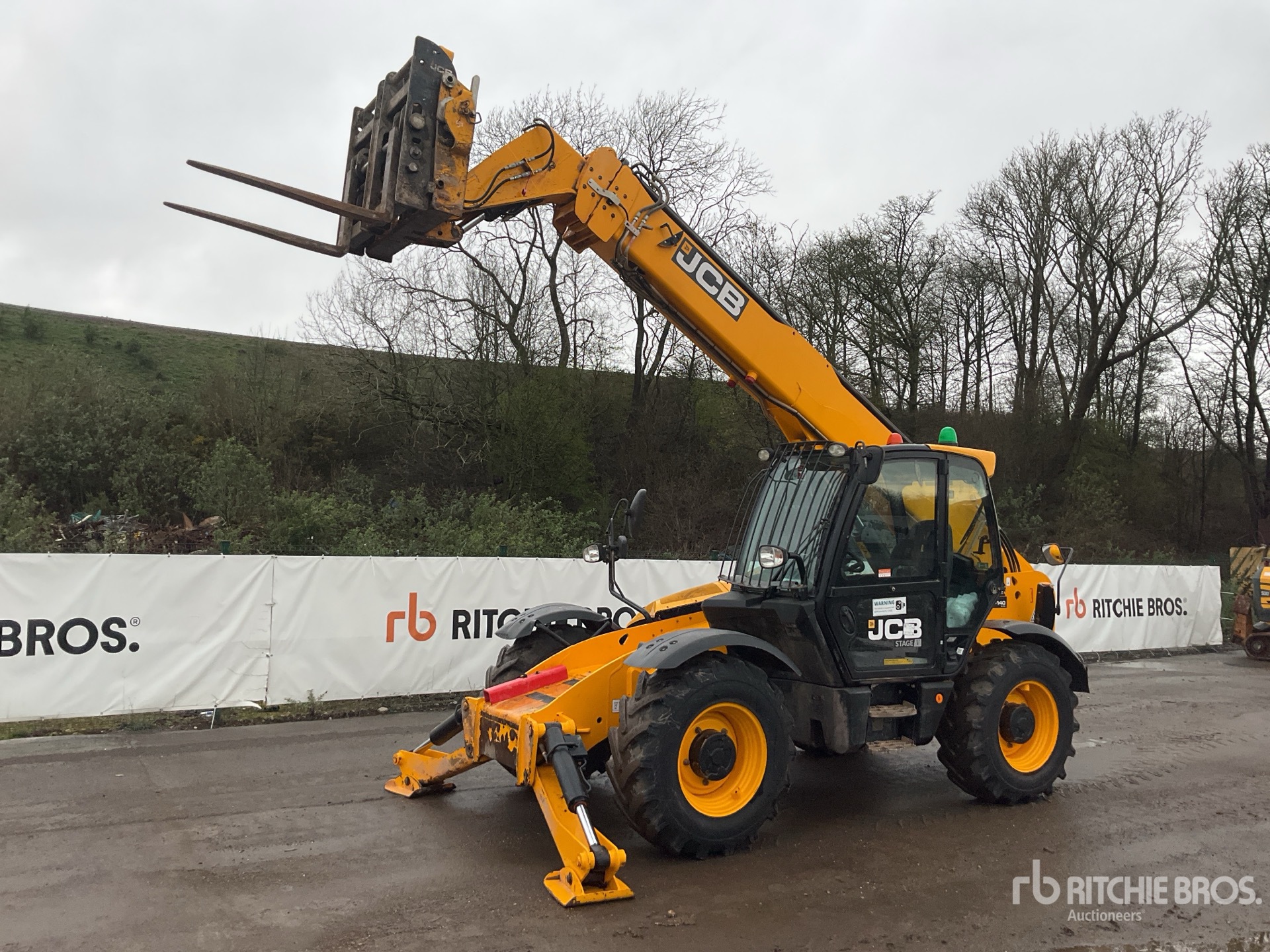 Enclosed Cab, Air Conditioner, Load Moment Indicator, 14 m Max Lift Height, 4000 kg Max Lift Capacity, 1070 mm Forks, Fork Positioner, Manual Coupler, Outriggers, Auxiliary Hydraulic Plumbing, 15.5/80-24 Tires
