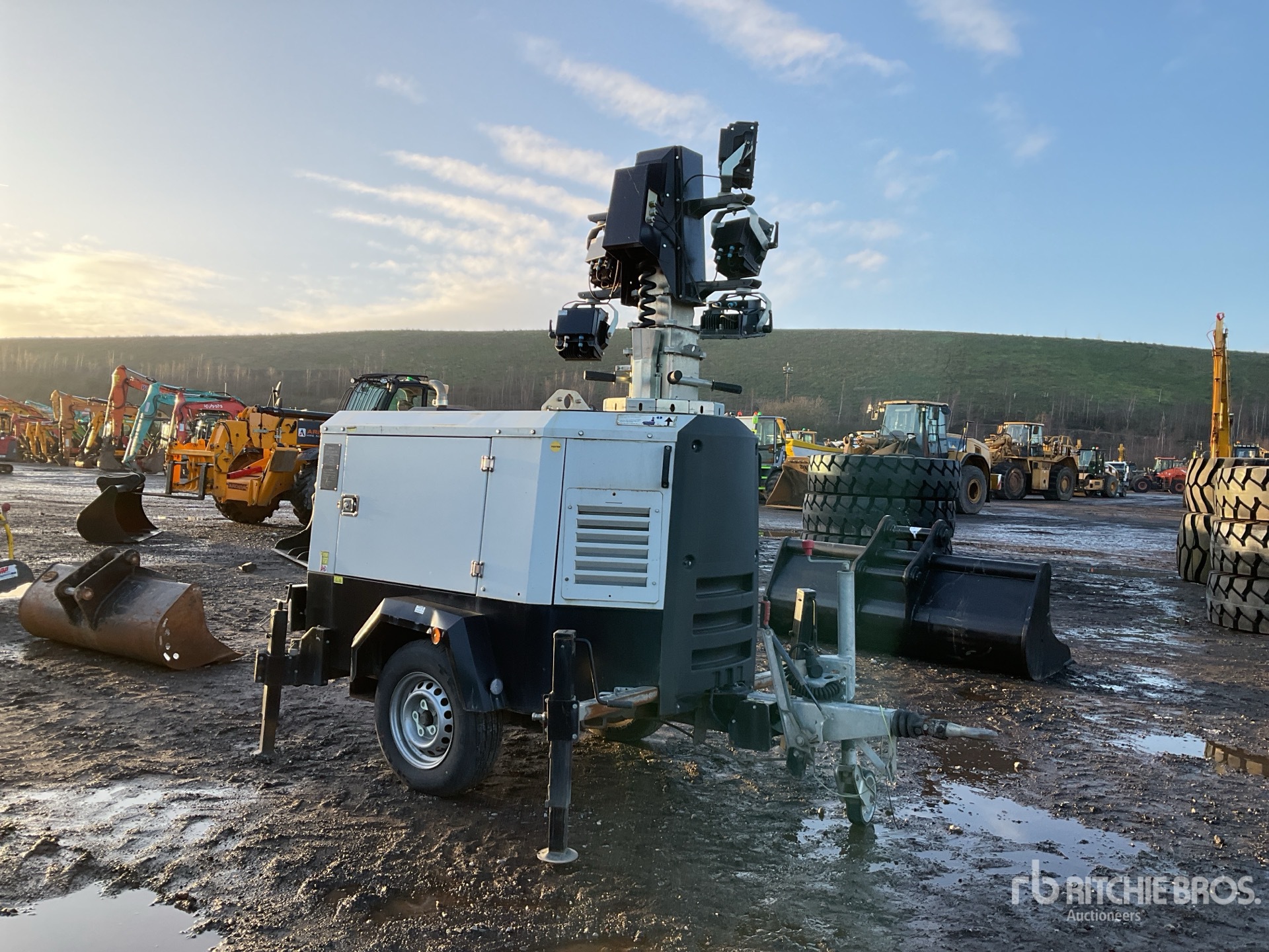 Kubota 2 Cylinder Diesel Engine, Kubota 2 Cylinder Diesel Engine, 6 Lamps, LED Lighting, Hydraulic Raise and Lower, Lunette Ring Carrier Trailer, Surge Brakes