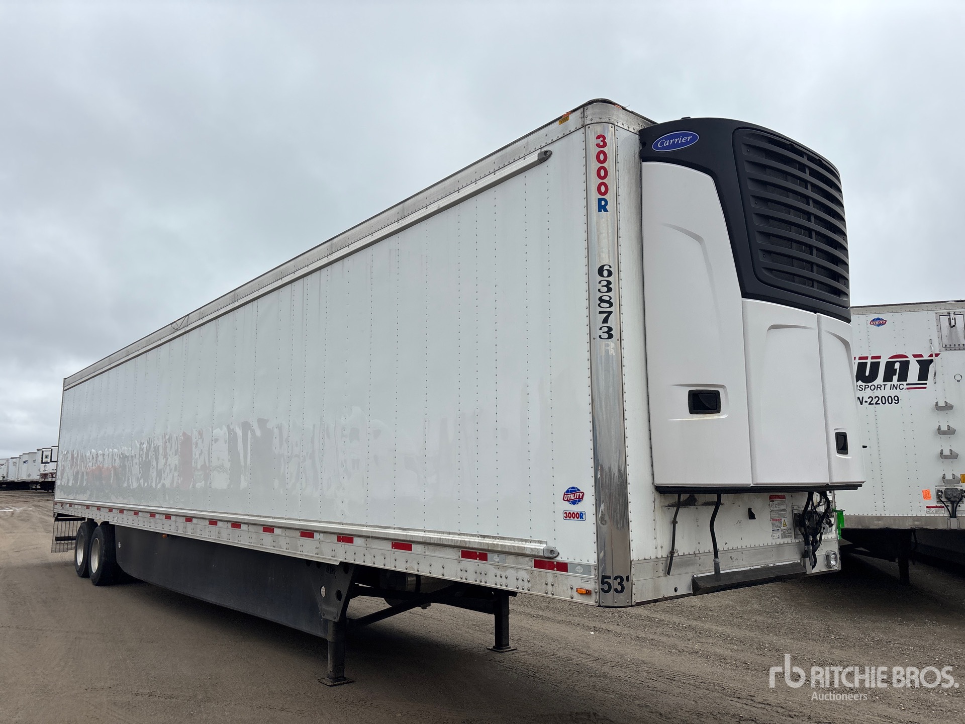Located in Lane 23 Spot 8, Carrier X4 7500 Refrigeration Unit, 3989 Total Hours, Air Ride Sliding Suspension, Side Skirts, Ducted Floor, Swing Door, 11R22.5 Tires, 65000 lb GVWR