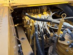 The main components are in place and operational as noted. The Machine Fault, Engine Fault, and Emission Fault lights are on.