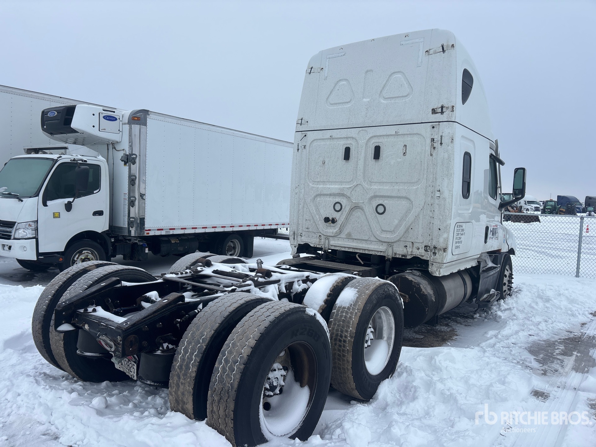 Detroit DD15 505 hp Engine, 2022 US EPA Label, 10525 Engine hrs, Detroit DT12-1650-OH1 12-Speed Automated Transmission, 13220 lb Front Axle, 40000 lb Rears, 53220 lb GVWR, Engine Brake, Double Differential Locks, 70 in High Rise Sleeper Cab, Bunk Beds, 229 in Wheelbase, Air Suspension, Aluminum Wheels, 11R22.5, Dual Fuel Tanks