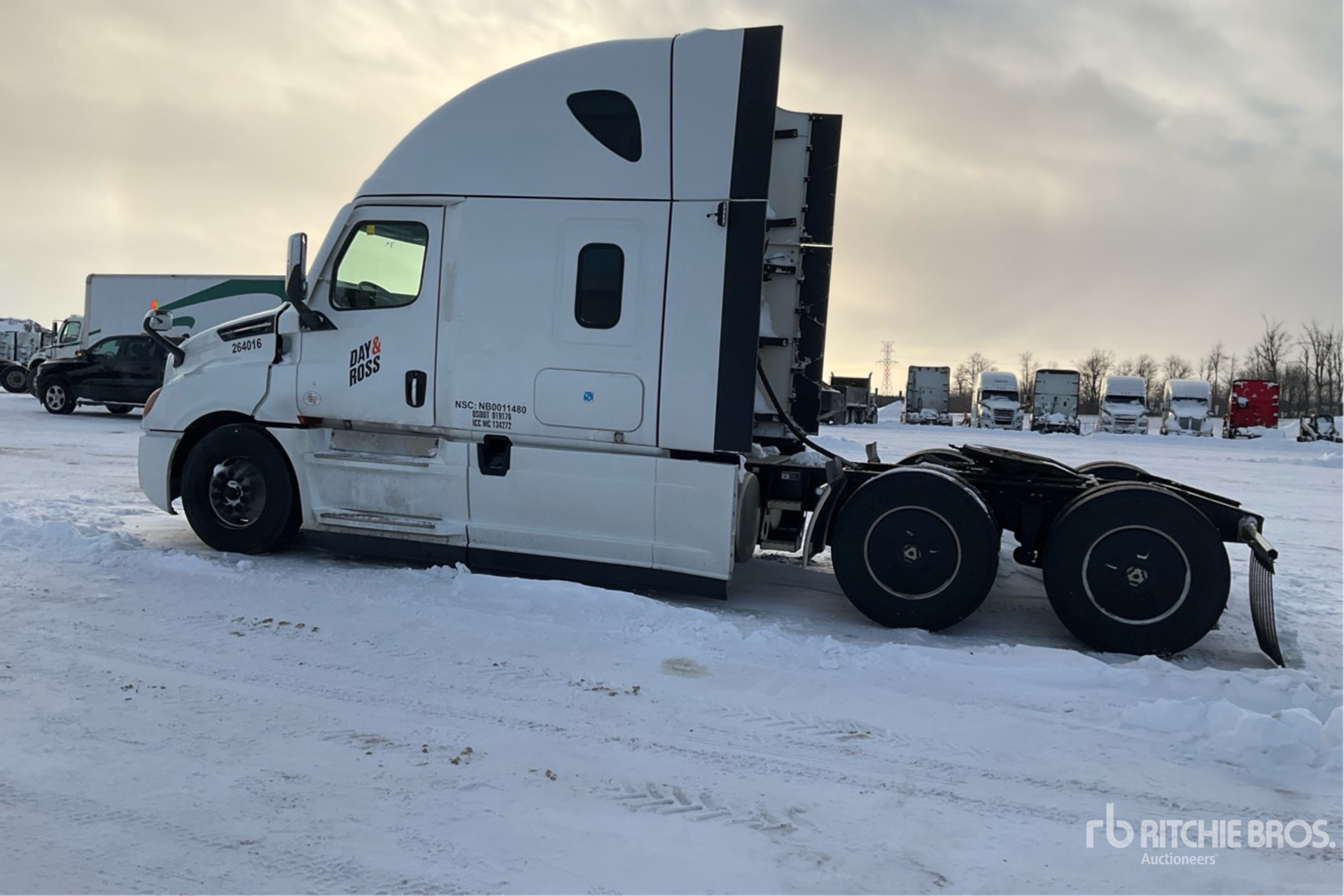 Located in Lane 20 Spot 65, Detroit DD15 505 hp Engine, 2023 US EPA Label, Detroit DT12-1650-OH Automated Transmission, 13220 lb Front Axle, 40000 lb Rears, 53220 lb GVWR, Engine Brake, Double Differential Locks, 70 in High Rise Sleeper Cab, Bunk Beds, 229 in Wheelbase, Air Suspension, Aluminum Wheels, 11R22.5 Front Tires, 11R22.5 Rear Tires, Air Sliding 5th Wheel, Dual Fuel Tanks