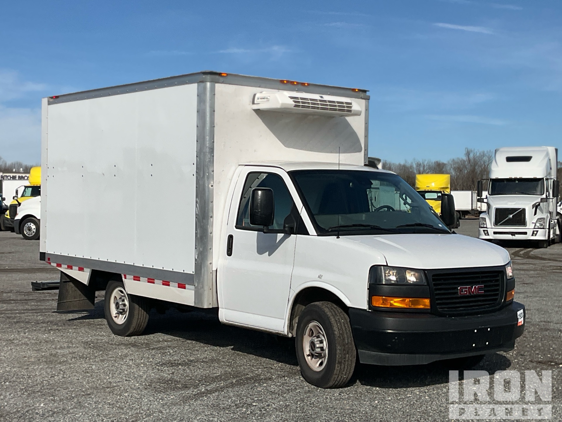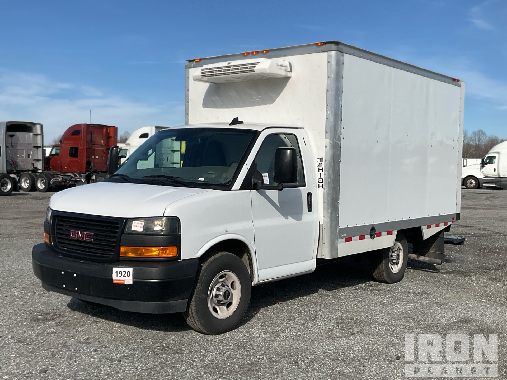 GM V8 6.6 L Gasoline Engine, 2024 US EPA Label, 693 Engine hrs, Automatic Transmission, 4100 lb Front Axle, 6084 lb Rears, 9900 lb GVWR, 245/75R16, Spring Suspension, 142 in Wheelbase, ** Other 2024 Thermo King V-220 Reefer Unit, WABASH 12 ft x 90 in Wide x 80 in High Body, Walk-Up Ramp