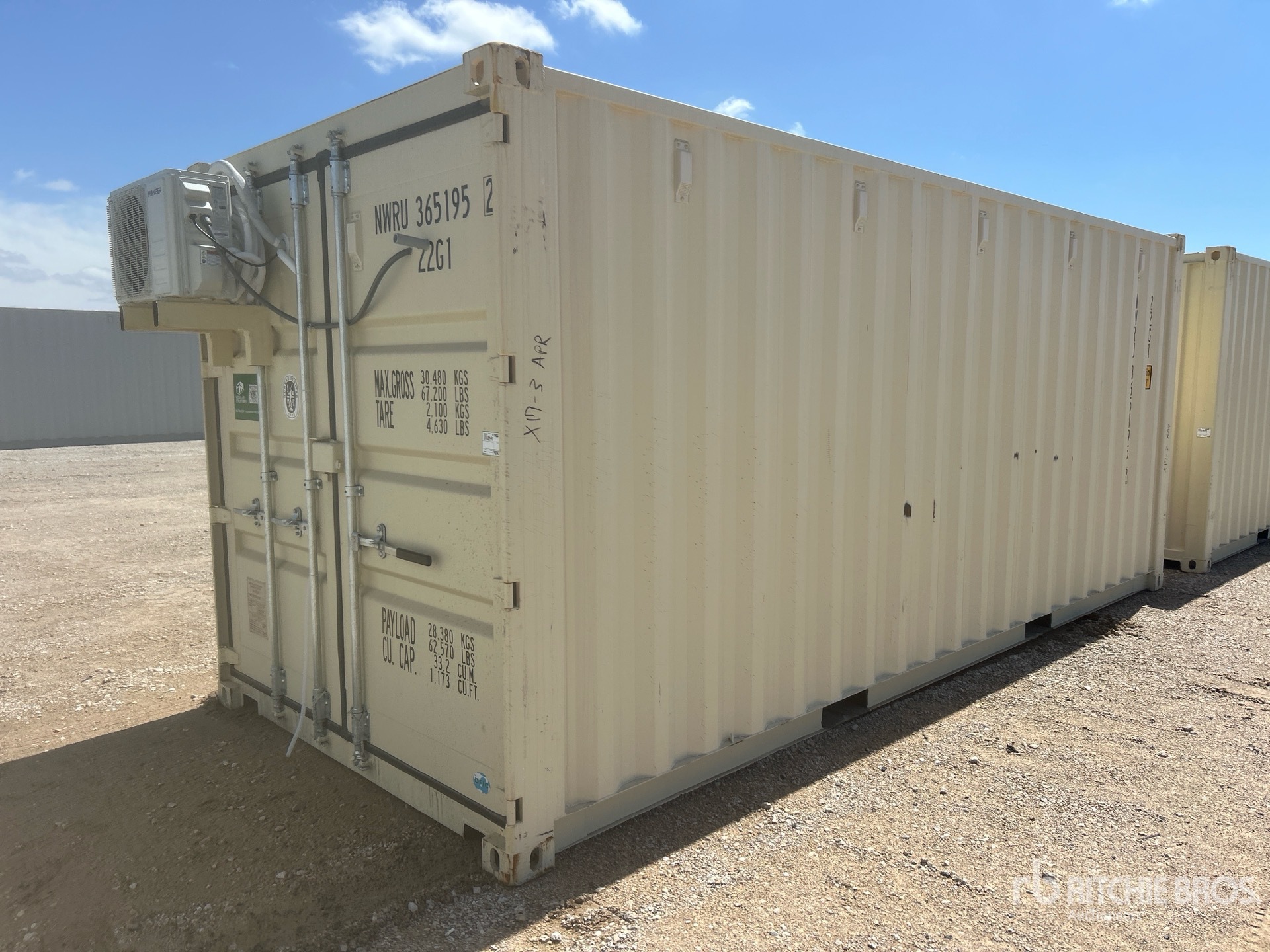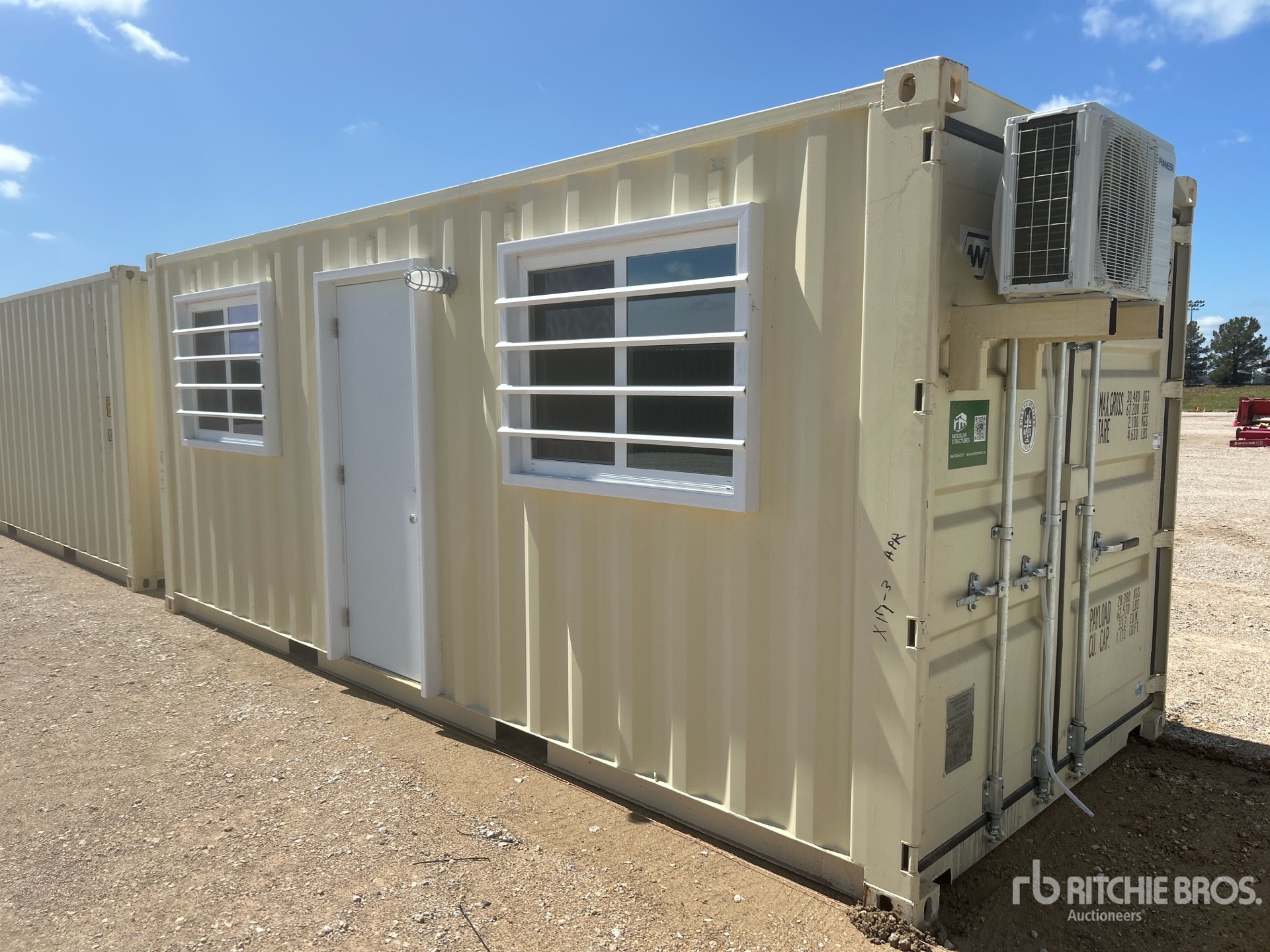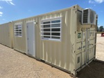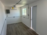 One-Way, Man Door, Two Windows, 20' x 8', 8' 6" High, Fork Pockets, Laminate Flooring, SunScreen, R13 Insulation, (1) Pioneer HVAC Mini-Split, (1) Electric Panel, LED Ceiling Lights, Interior Outlets, Wiring done to National Electric Code (NEC)