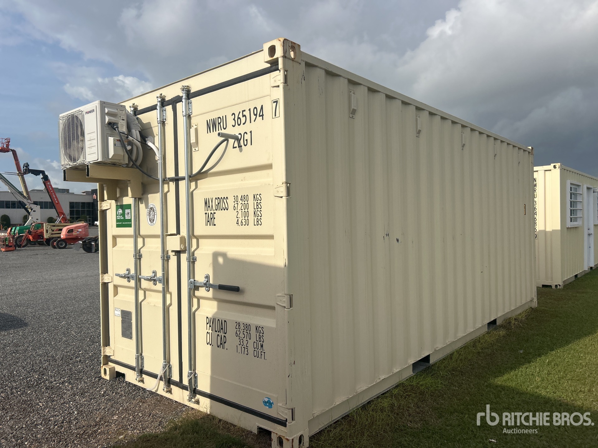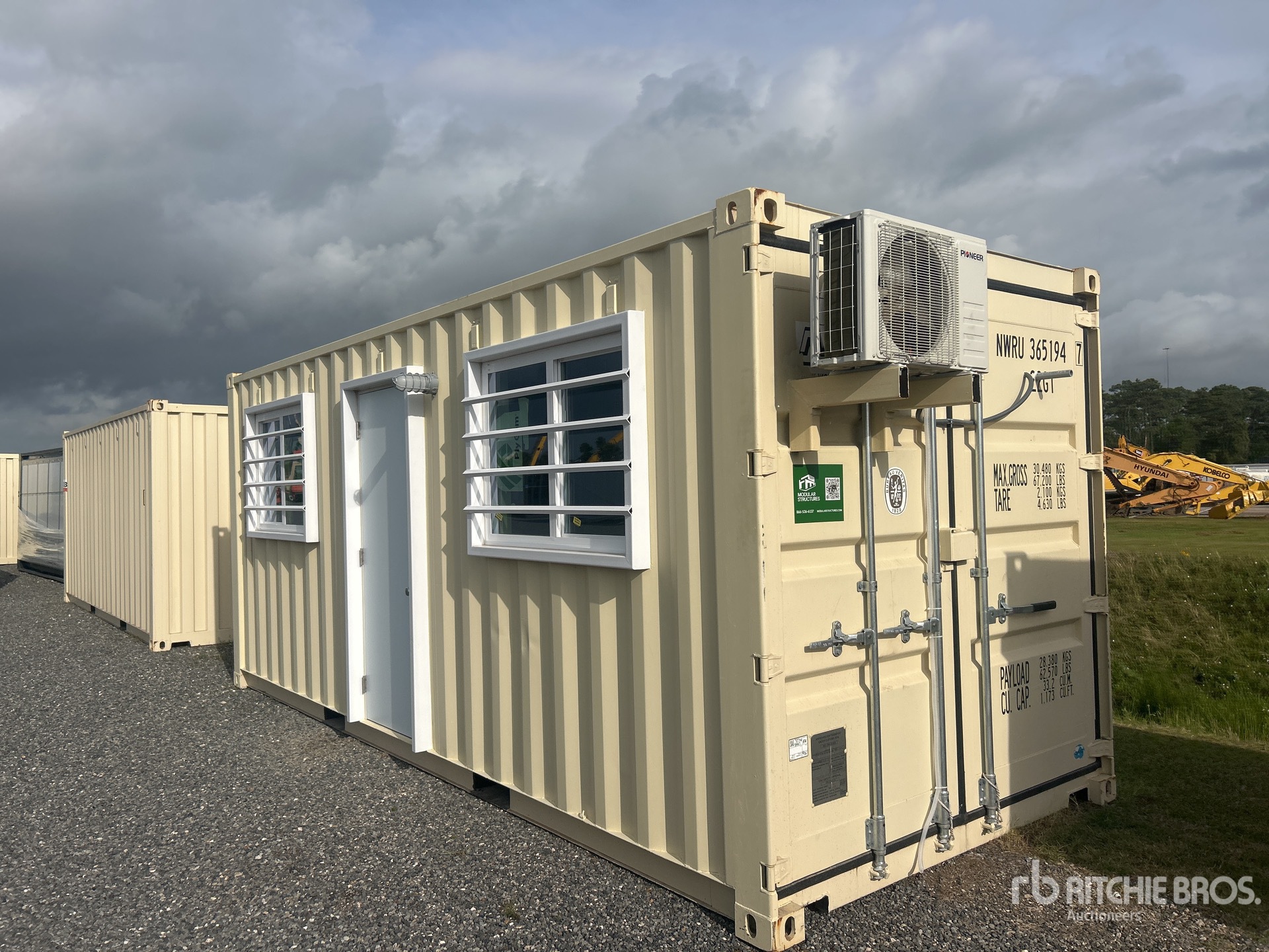 20' x 8', 8' 6" High, (1) Swing-Out Door, (2) Windows w/Security Bars, Fork Pockets, Laminate Flooring, SunScreen, R13 Insulation, (1) Pioneer HVAC Mini-Split, (1) Electric Panel, LED Ceiling Lights, Interior Outlets, Wiring done to National Electric Code (NEC)