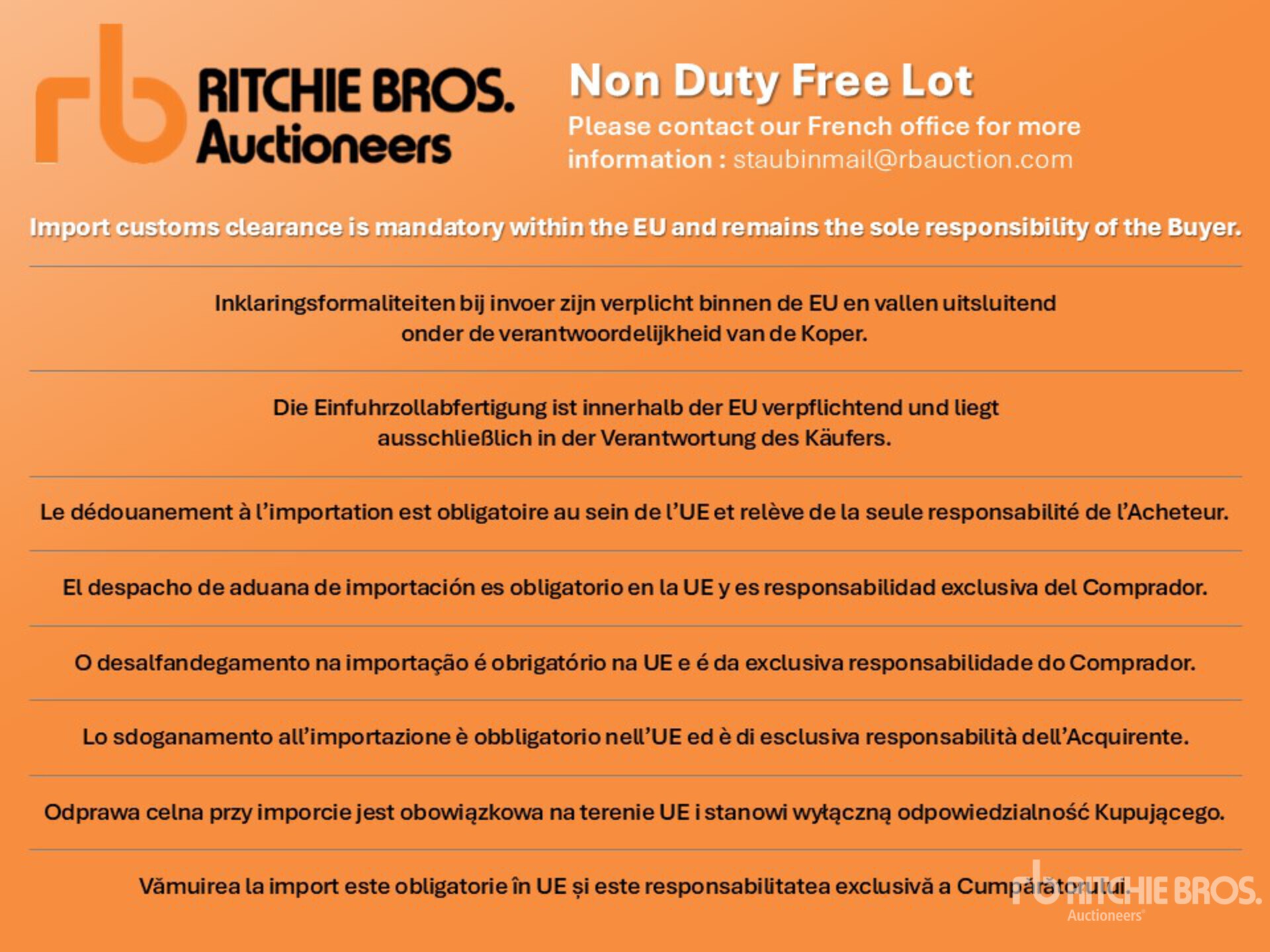 ** LOT SOUS DOUANE, MATERIEL NON CE, RESERVE AUX ACHETEURS EXPORT, NON IMPORTABLE EN FRANCE, NON LIBRE DE CIRCULATION DANS LA COMMUNAUTE EUROPEENNE / NON DUTY FREE CIRCULATION IN EU, EQUIPMENT NOT CE, EXPORT BUYERS ONLY, CAN NOT BE CUSTOM CLEARED IN FRANCE **