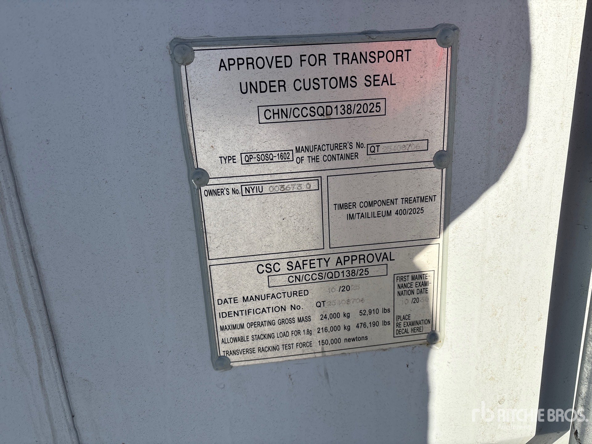 詳細的設備資訊範圍有限,利氏兄弟拍賣行並未檢驗除此處明確規定以外的任何設備部分或組件。除非明確說明,否則我們對設備或其組件不做任何明示或暗示的陳述或保證,包括但不限於有關功能性、符合性或遵守任何適用當局或監管機構的任何安全標準或要求、適合任何特定用途或適銷性的陳述或保證。強烈建議您在投標前自行詳細檢驗設備。