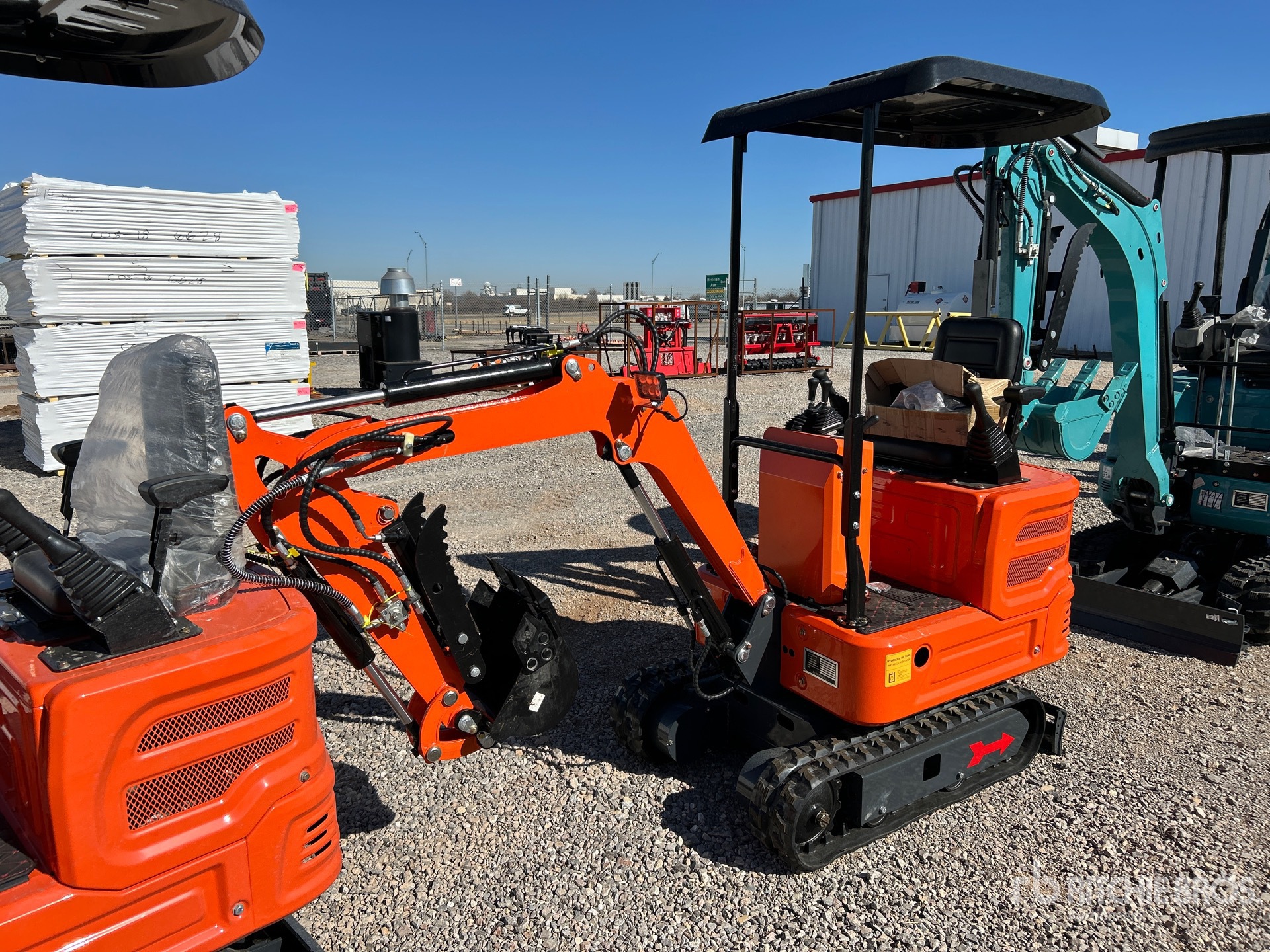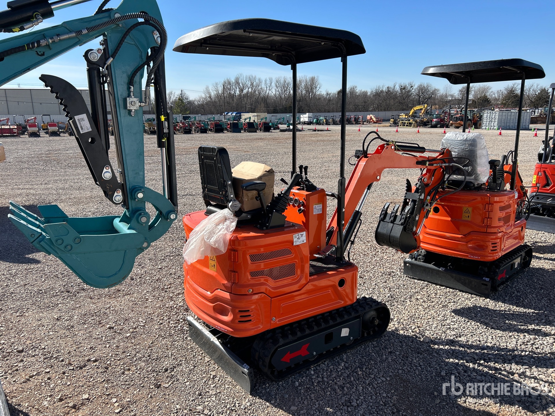 2 ft 8 in Stick, Auxiliary Hydraulic Plumbing, Backfill Blade, 7 in Rubber Tracks, 12 in Digging Bucket, Hydraulic Thumb