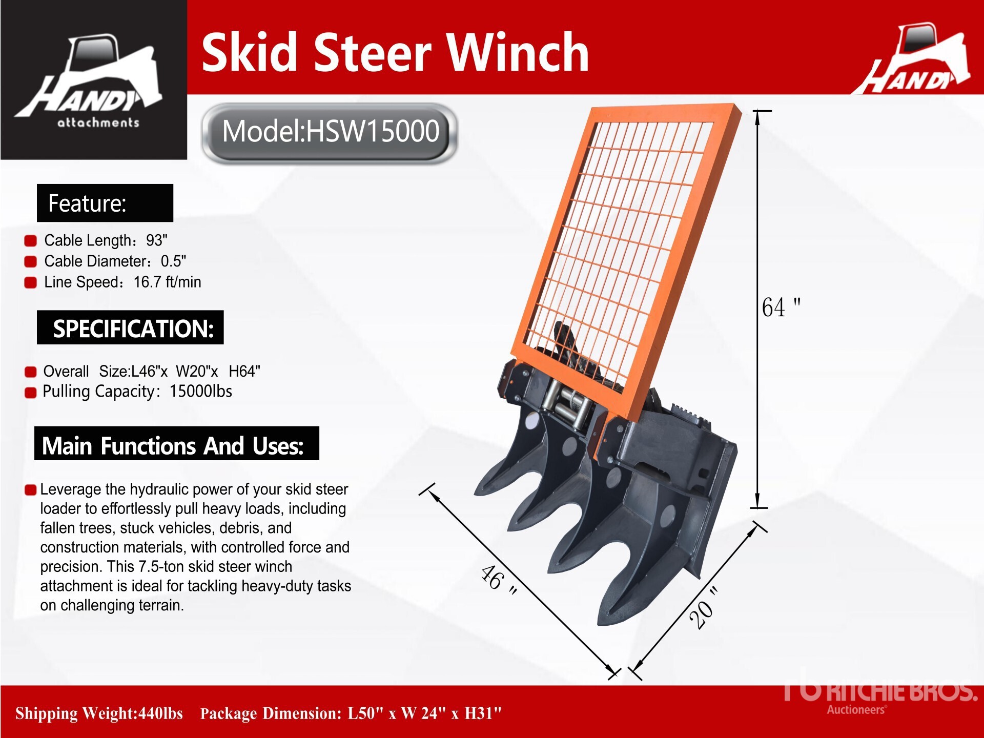 93 in Cable Length, 0.5 in Cable Diameter