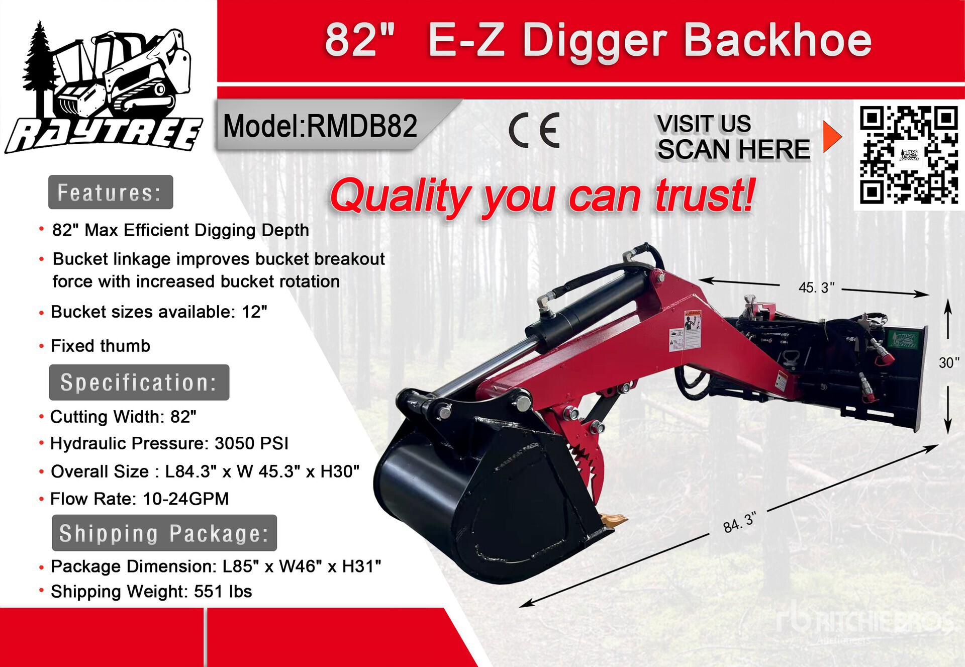 82 in Max Efficient Digging Depth, 12 in Digging Bucket, Fixed Thumb