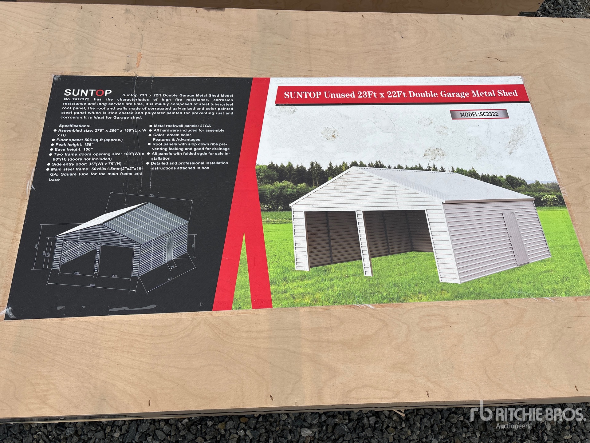 2026 Suntop S2322 23 ft x 22 ft Double Garage Metal Shed (Unused)
