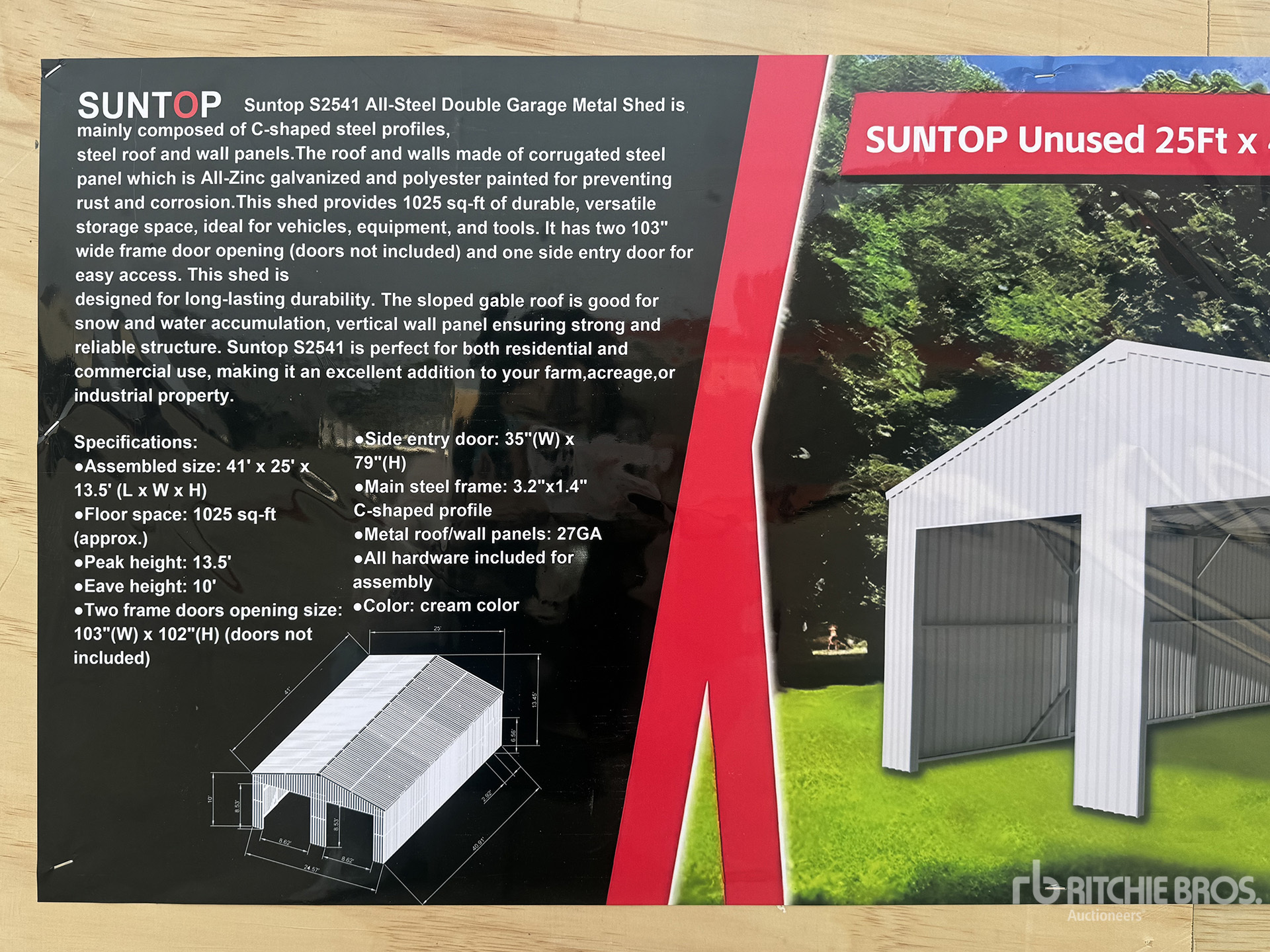 2026 SUNTOP S2541 25 ft x 41 ft Double Garage Metal Shed (Unused)
