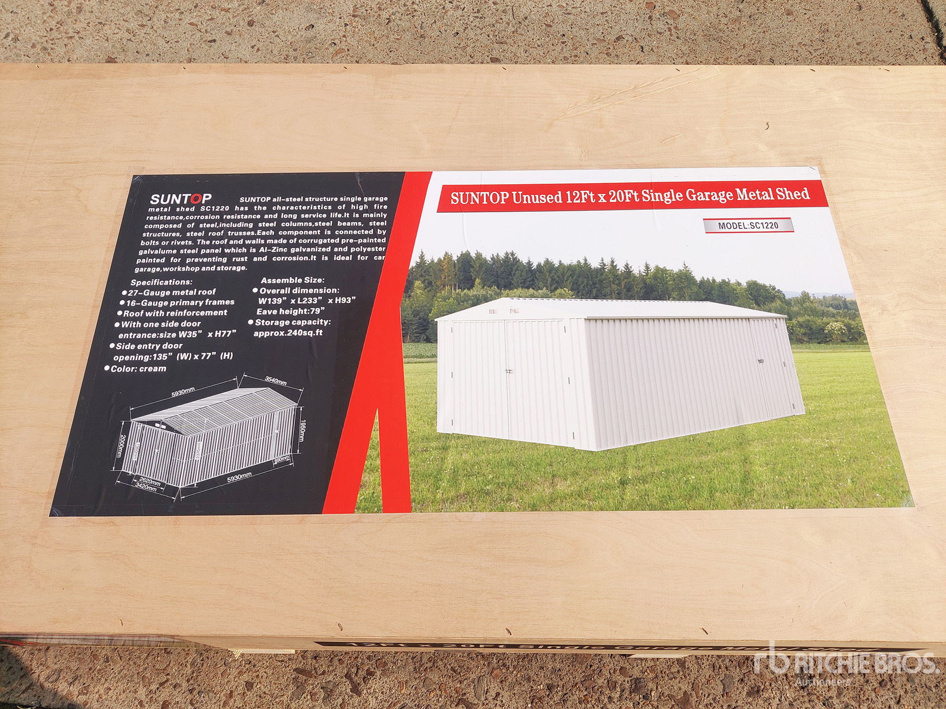 2026 SUNTOP SC1220 12 ft x 20 ft Single Garage Metal Shed (Unused)