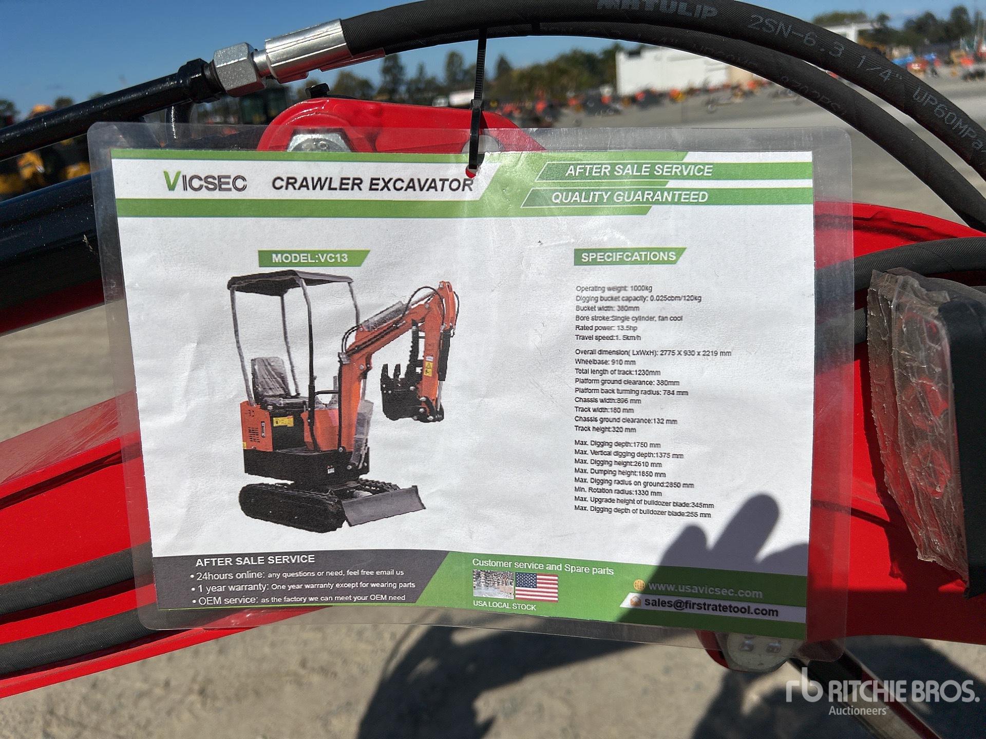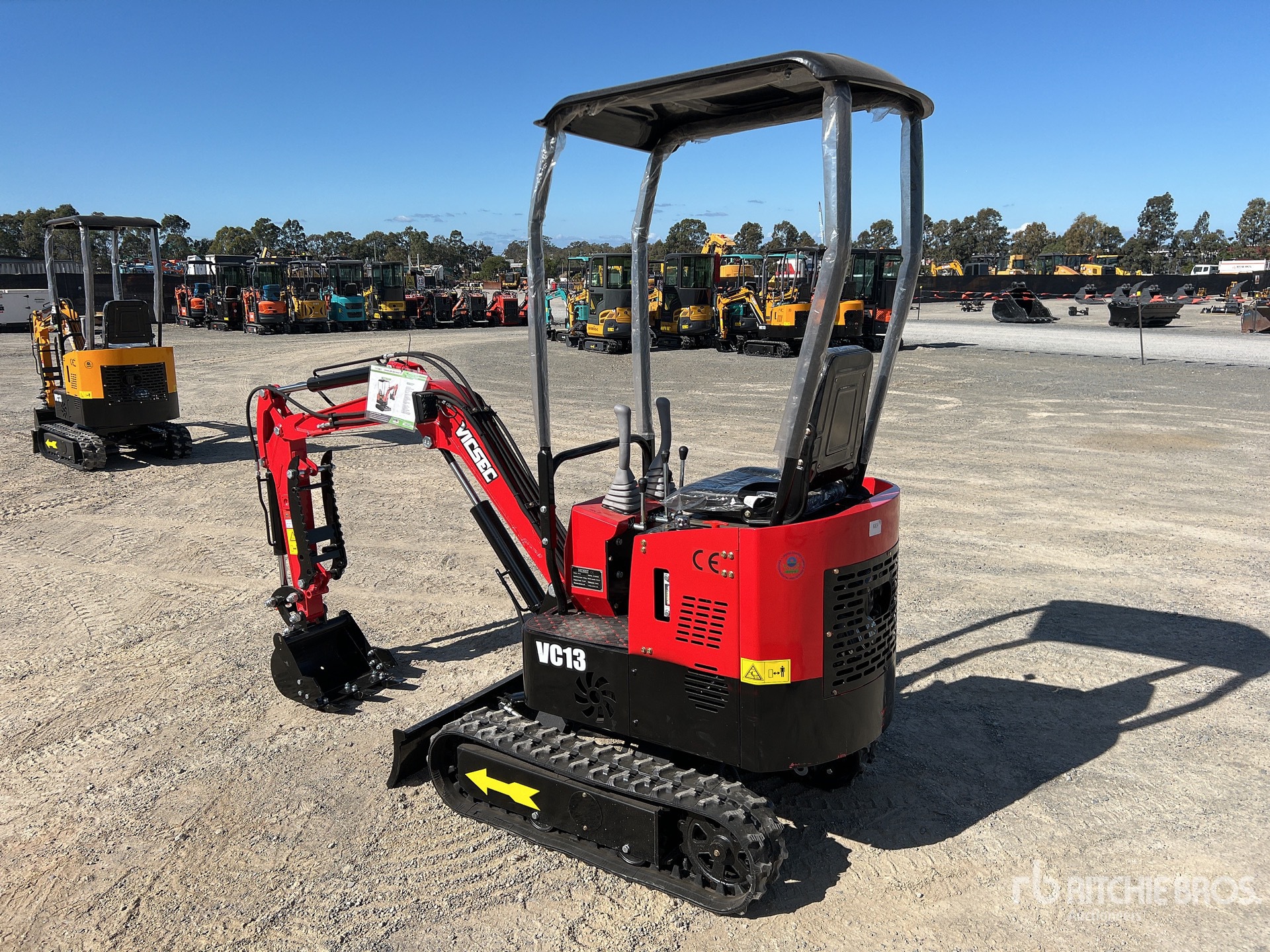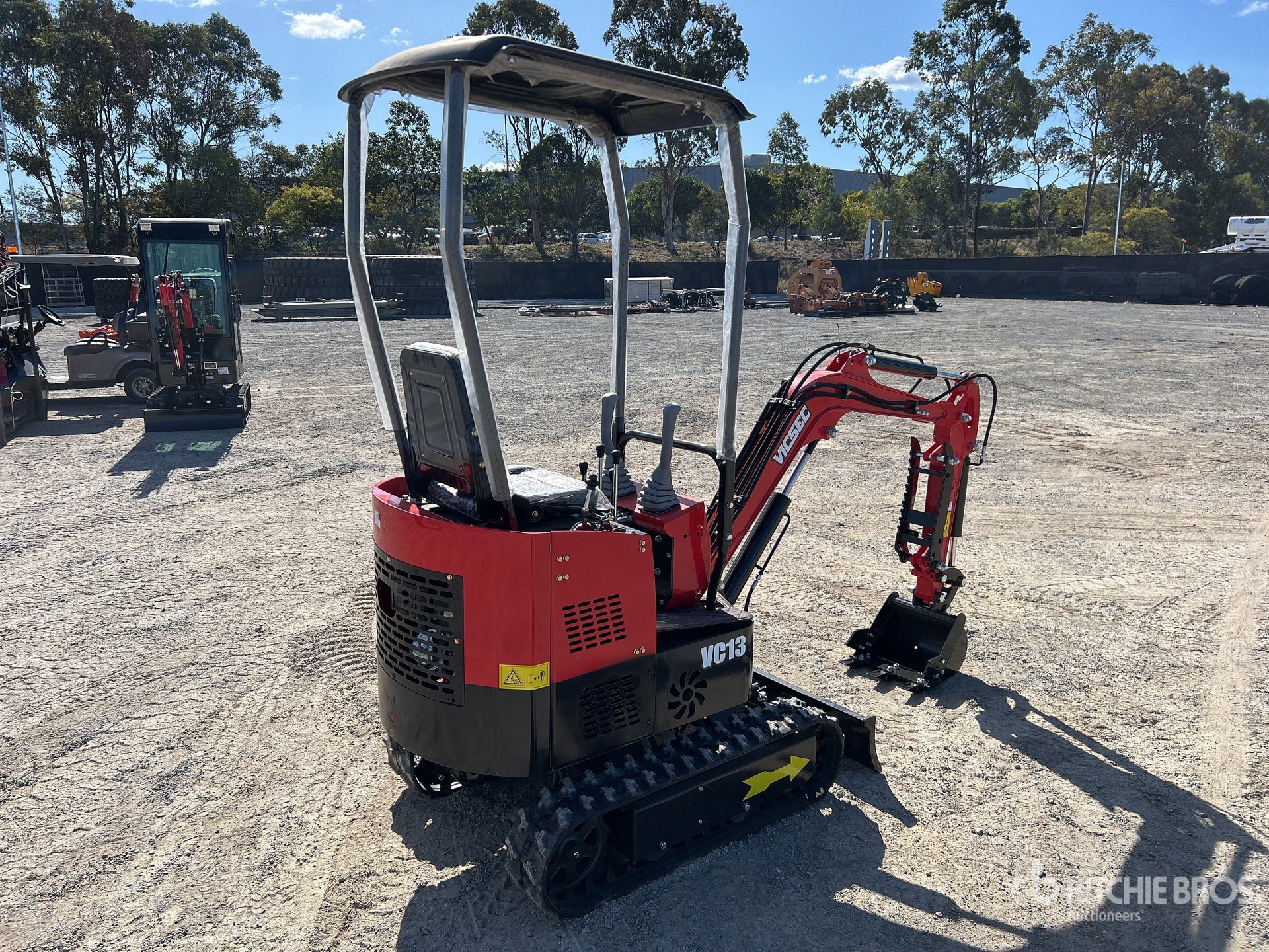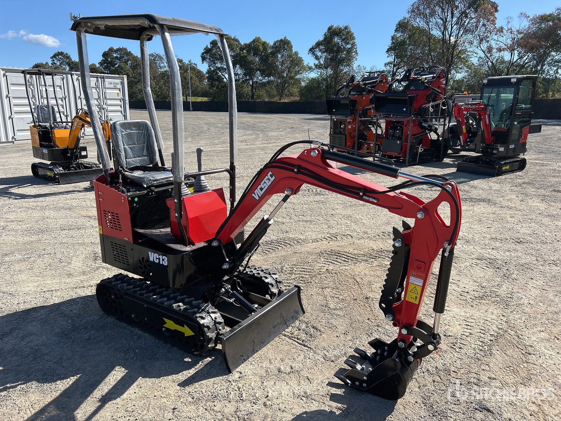 2 ft 7 in Stick, Auxiliary Hydraulic Plumbing, Backfill Blade, 7 in Rubber Tracks, 16 in Digging Bucket, Manual Thumb