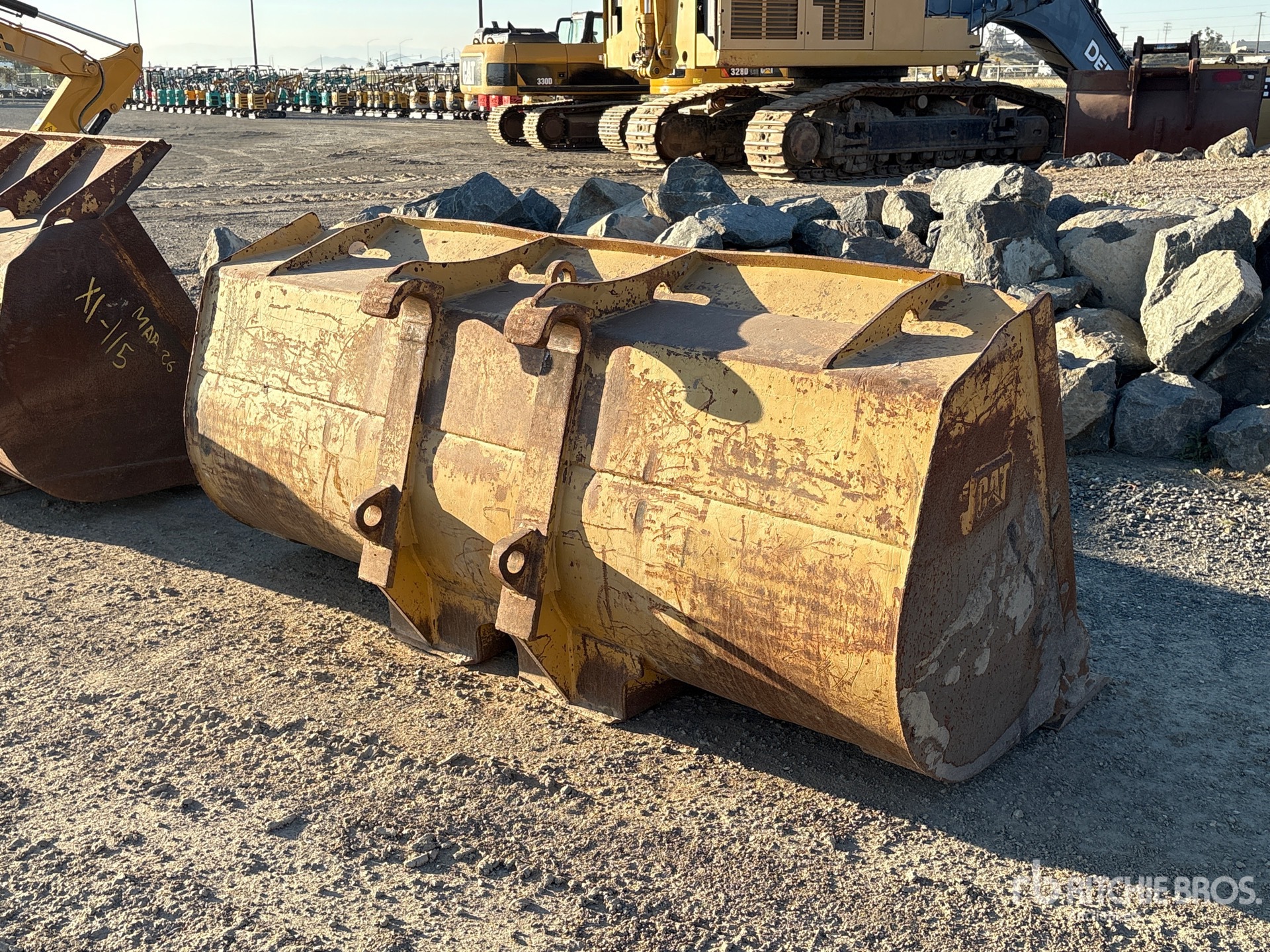 Cat 100 in Wheel Loader Bucket