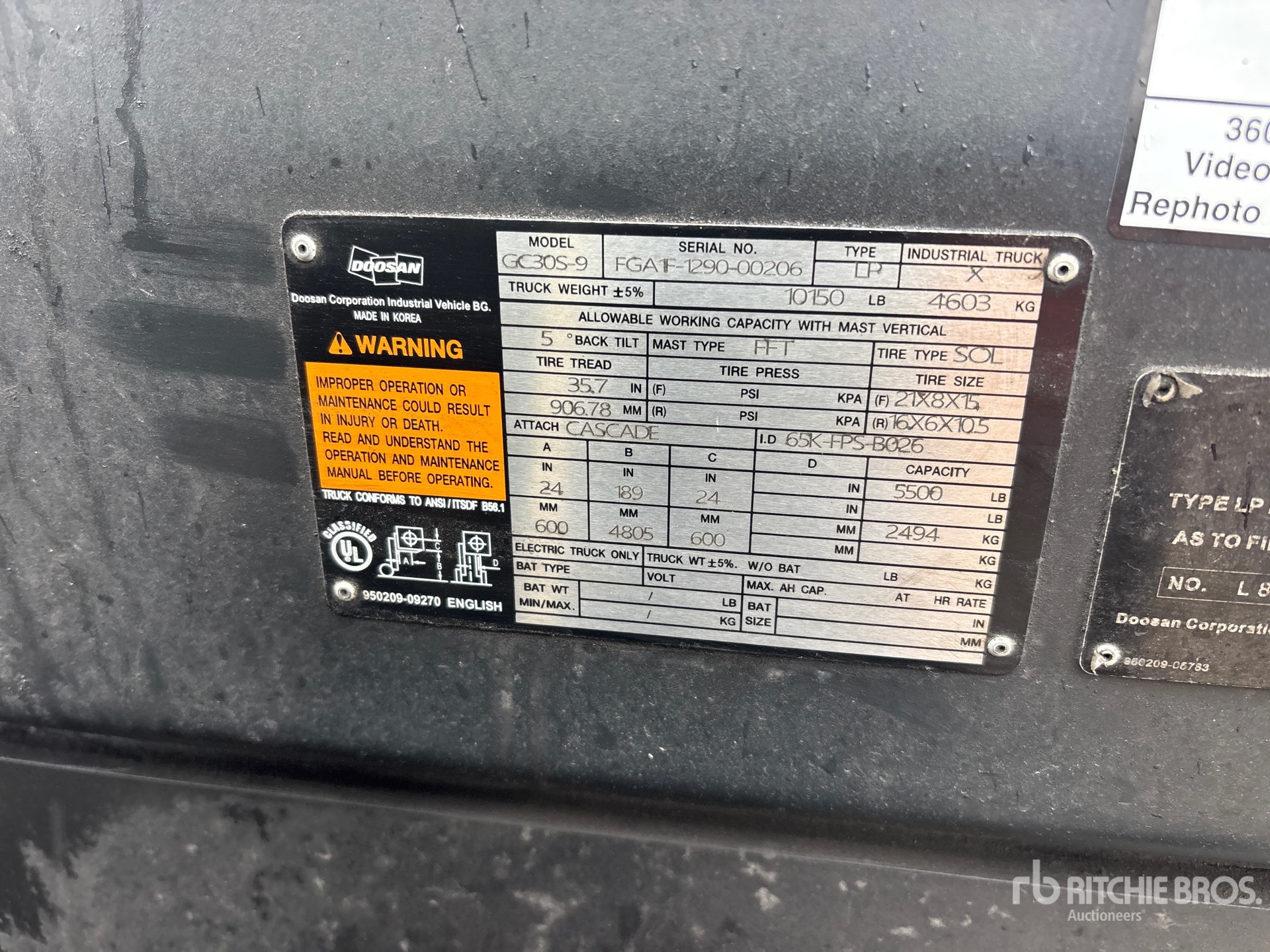 詳細的設備資訊範圍有限,利氏兄弟拍賣行並未檢驗除此處明確規定以外的任何設備部分或組件。除非明確說明,否則我們對設備或其組件不做任何明示或暗示的陳述或保證,包括但不限於有關功能性、符合性或遵守任何適用當局或監管機構的任何安全標準或要求、適合任何特定用途或適銷性的陳述或保證。強烈建議您在投標前自行詳細檢驗設備。