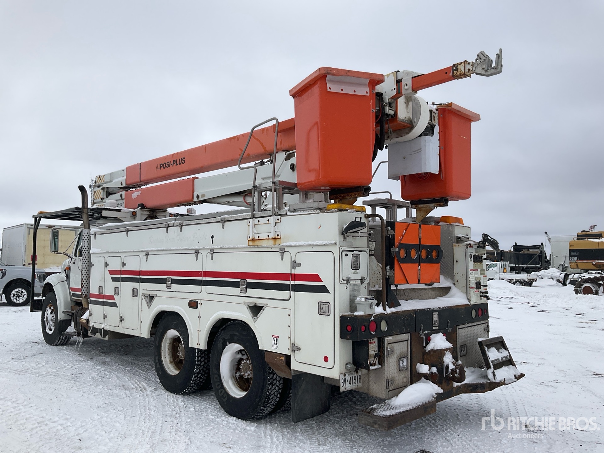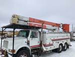 Located in Lane 14 Spot 52, International 6 Cylinder Diesel Engine, 12290 Engine hrs, Allison Automatic Transmission, 315/80R22.5 Front Tires, 11R22.5 Rear Tires, Hendrickson Spring over Walking Beam Suspension, 212 in Wheelbase, PTO, 600 lb Capacity, Center Mounted, Insulated Two-Person Articulated Boom, Lower Boom Fiberglass Insert, Utility Body, Material Handling Jib, A-Outriggers, Rear Outriggers, 18 ft x 100 in Bed, Pintle Hitch