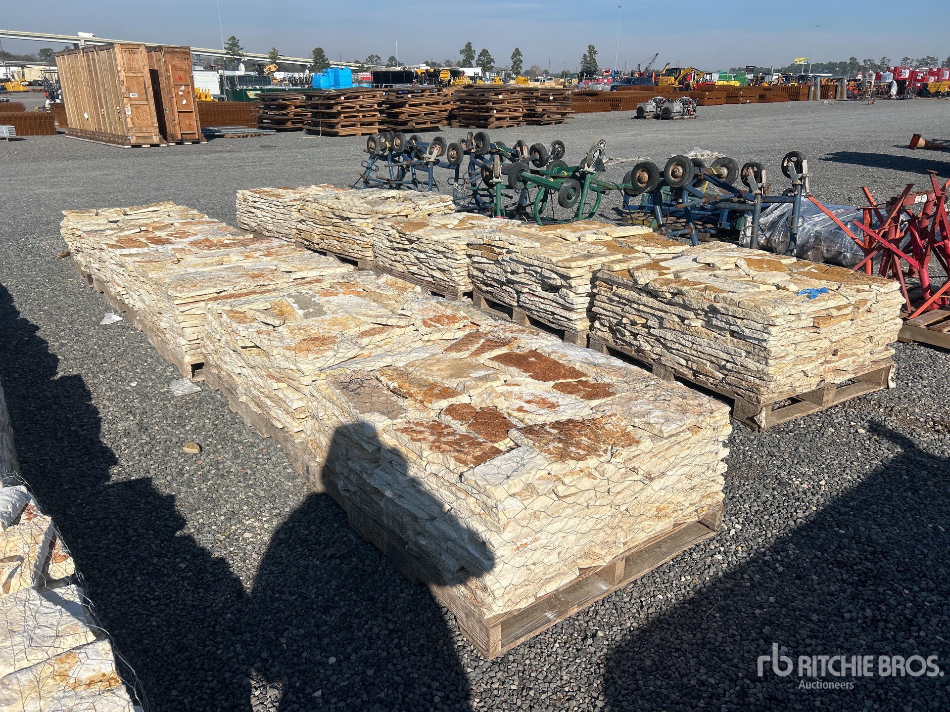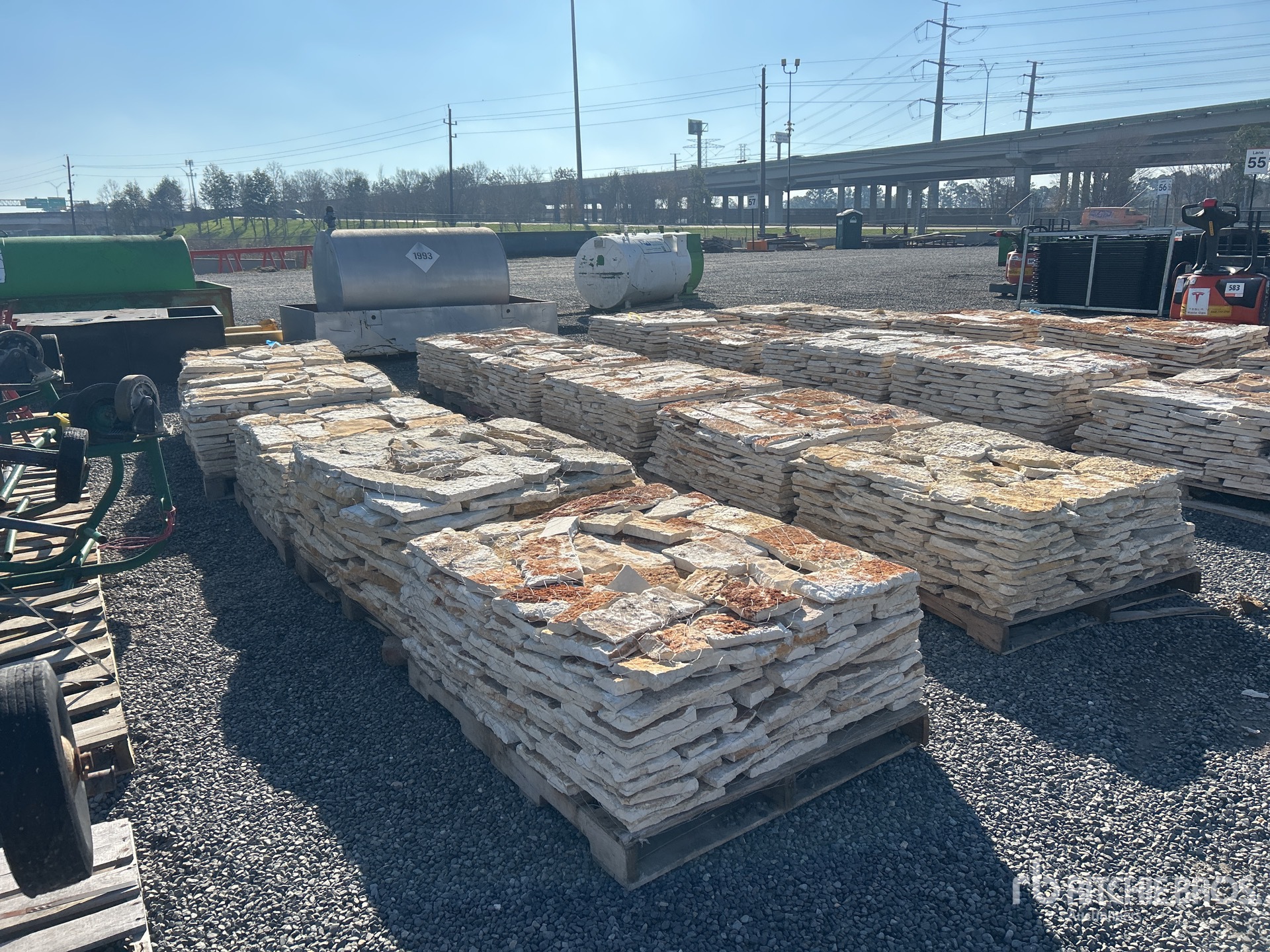 Quantity of (10 Pallets) - Austin White Sunflower Limestone 4 - 8 In. Chopped Veneer Stone (Unused)