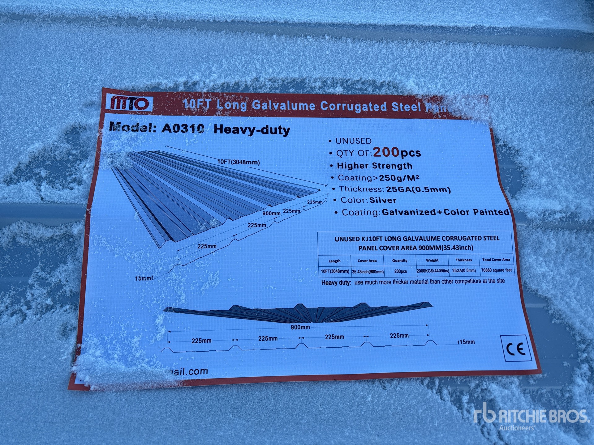 Quantity of (200) 2026 MTO A0310 10 ft Galvalume Corrugated Steel Panels (Unused)