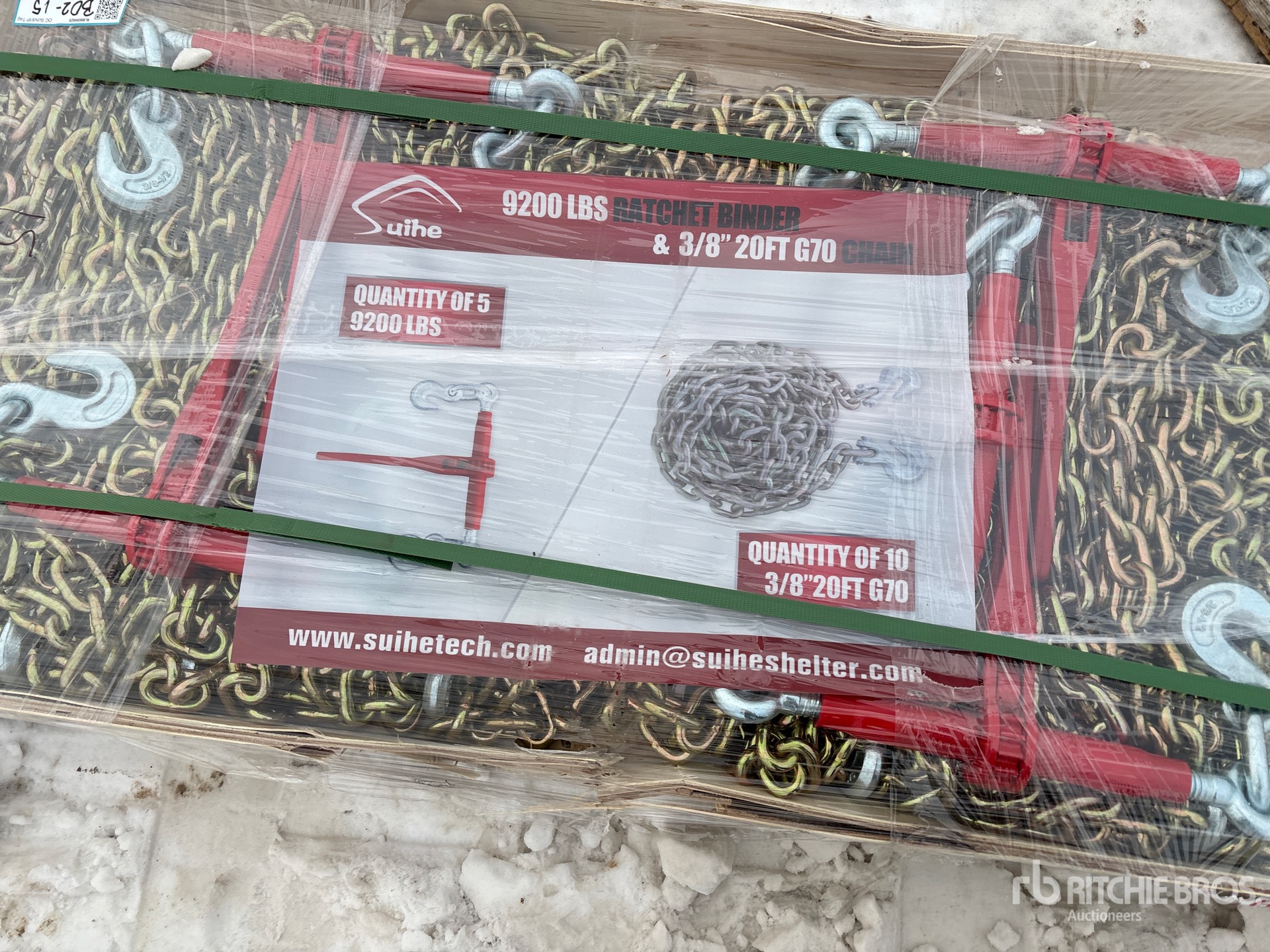 Quantity of (5) 2026 Suihe BC-9200 9200 lb Ratchet Binders & (10) 20 ft Chains (Unused)