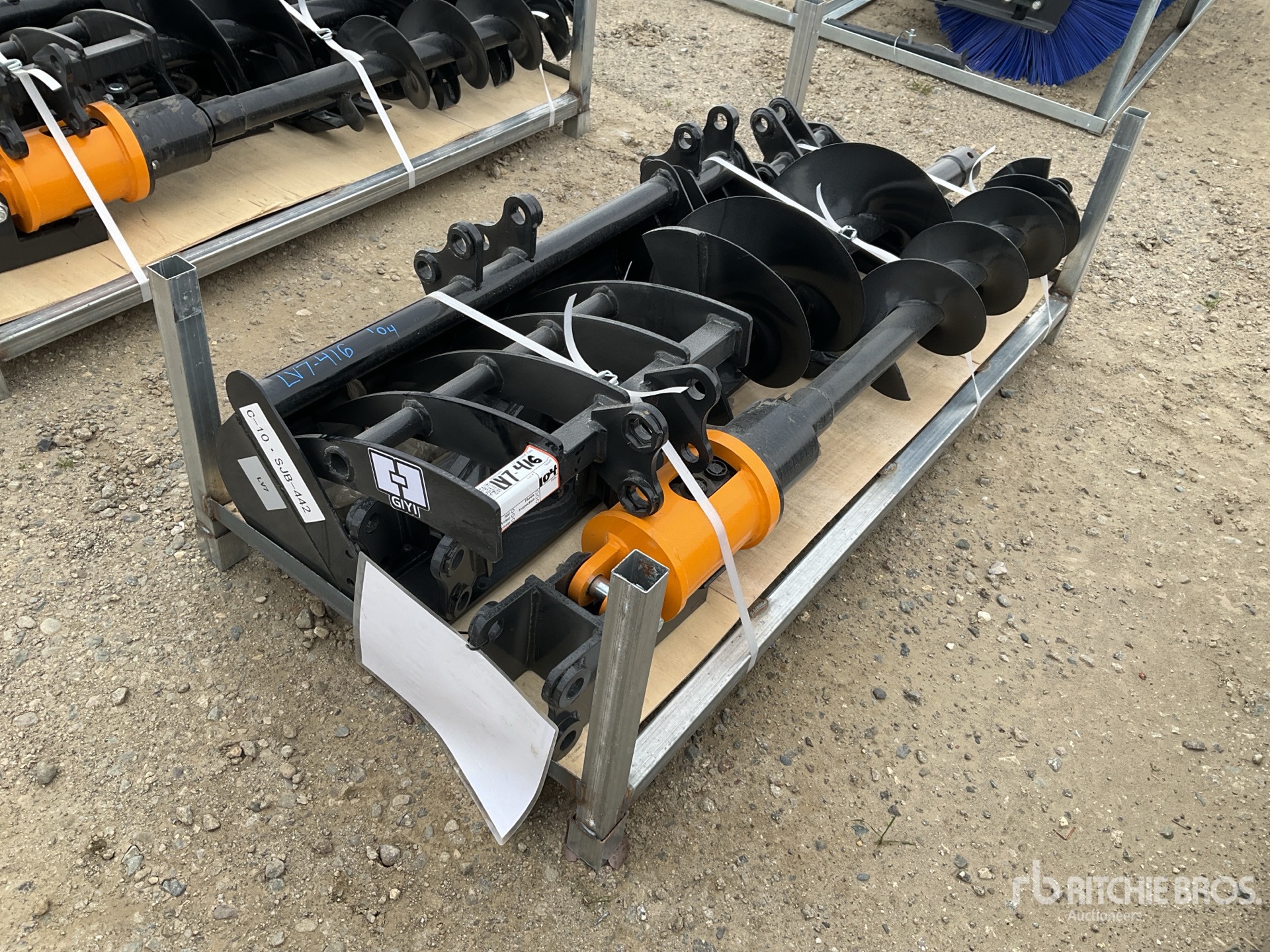 (1) Rake, (1) Ripper, (1) Grapple, (1) Auger w/ 12 in & 16 in Auger Bits, (1) 8 in Narrow Bucket, (1) 24 in Bucket, (1) 32 in Bucket